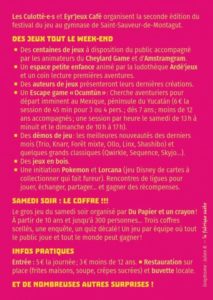 Organisé par Les Culotté.e.s et Eyr’Jeux Café Des jeux tout le week-end et une big soirée Samedi soir organisé par Du Papier et un Crayon !