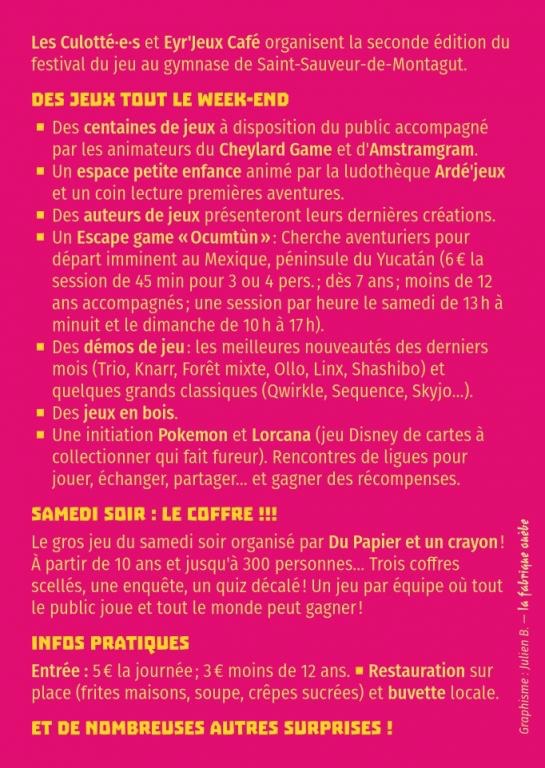 • Des centaines de Jeux par les animateurs du Cheylard Game et Amstramgram
