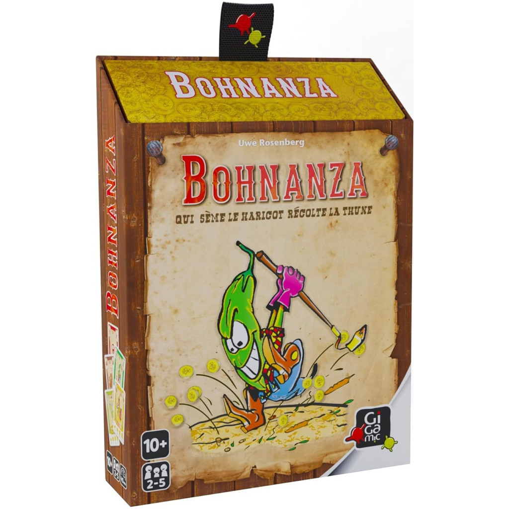 Contenu : 61 cartes carrées (70 x 70 mm), 24 cartes rectangulaires (63 x 42 mm), 22 pions en carton, 1 livret de règles.