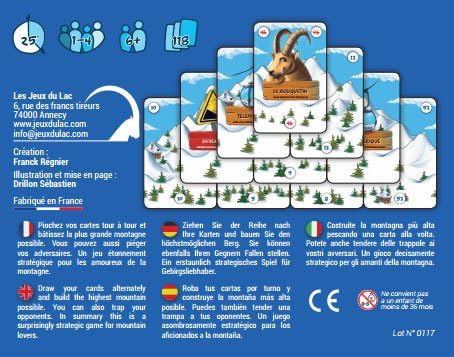 On pioche tour à tour des cartes numérotées de 1 à 100 pour assembler la montagne la plus haute. Il est permis de poser les cartes piochées dans les montagnes des adversaires pour les perturber. Les animaux constituent des bonus, les téléphériques sont des jokers et les avalanches des handicaps. La partie s’arrête lorsqu’il n’y a plus de cartes dans la pioche.