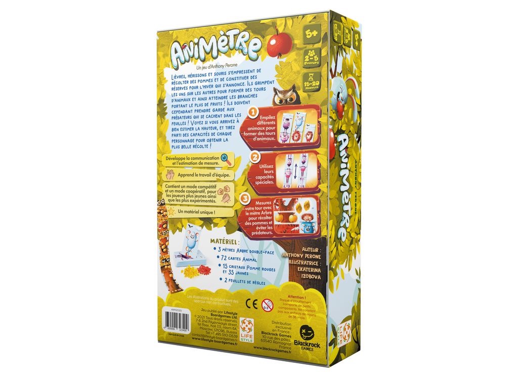 Animètre… Dans ce jeu coopératif et de communication, vous devez aider les animaux de la forêt à attraper autant de pommes que possible ! Empilez les animaux et atteignez les pommes sur un mètre Arbre. Voyez si vous arrivez bien à mesurer la hauteur, et tirez parti des capacités spéciales de chaque animal pour obtenir la plus belle récolte !