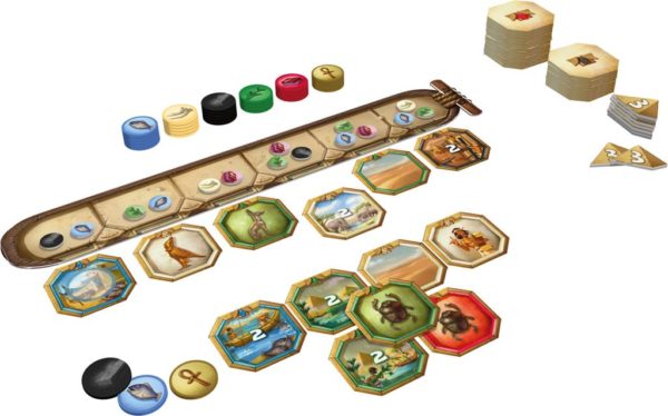 À votre tour : prenez 3 jetons ressource OU achetez une tuile, utilisez son pouvoir puis connectez-la à votre domaine ! Sur le marché flottant au cœur du jeu, les joueurs influent sur l’approvisionnement comme la valeur des tuiles. Utilisez vos ankhs à bon escient pour acheter au meilleur moment ! Gagnez le plus de points en connectant des tuiles de même couleur et/ou comportant les mêmes animaux.