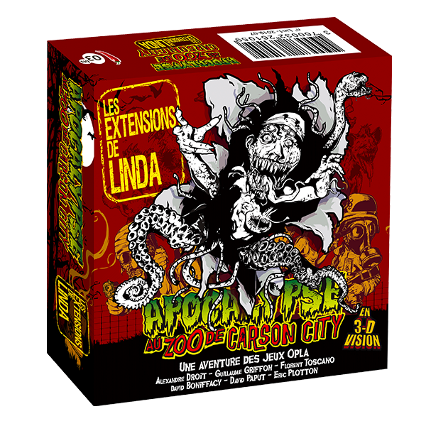 Apocalypse au Zoo de Carson City – Les Extensions de Linda. Tout ne s’est pas passé exactement comme prévu… Plus de joueurs : 2 nouvelles équipes ont débarquées en renfort ! Jusqu’à 6 joueurs ! Plus de trash, Plus de tactique : Linda a surgi ! Plus d’aventures en solo et en coopération, mais toujours allez au zoo, et libérez les animaux !