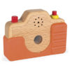 Ce jouet est une réplique d’appareil photo en bois de hêtre. Il présente un flash qui se déclenchera et illuminera également le modèle lorsque votre enfant appuiera sur le bouton. On pourra entendre alors le son de la prise de vue, comme pour un authentique appareil photo. Le viseur qui est un kaleïdoscope fera découvrir à votre enfant des formes et des couleurs extraordinaires.
