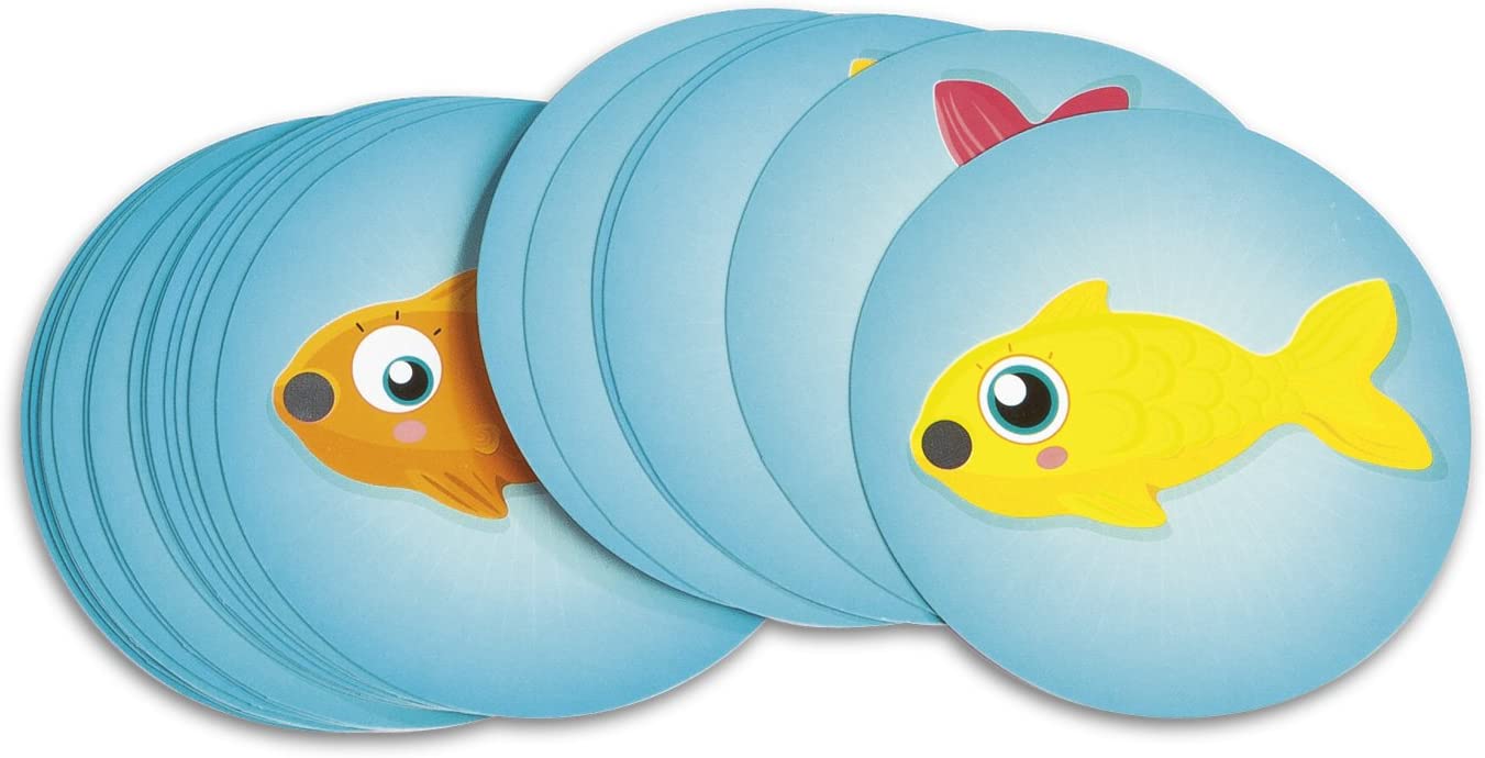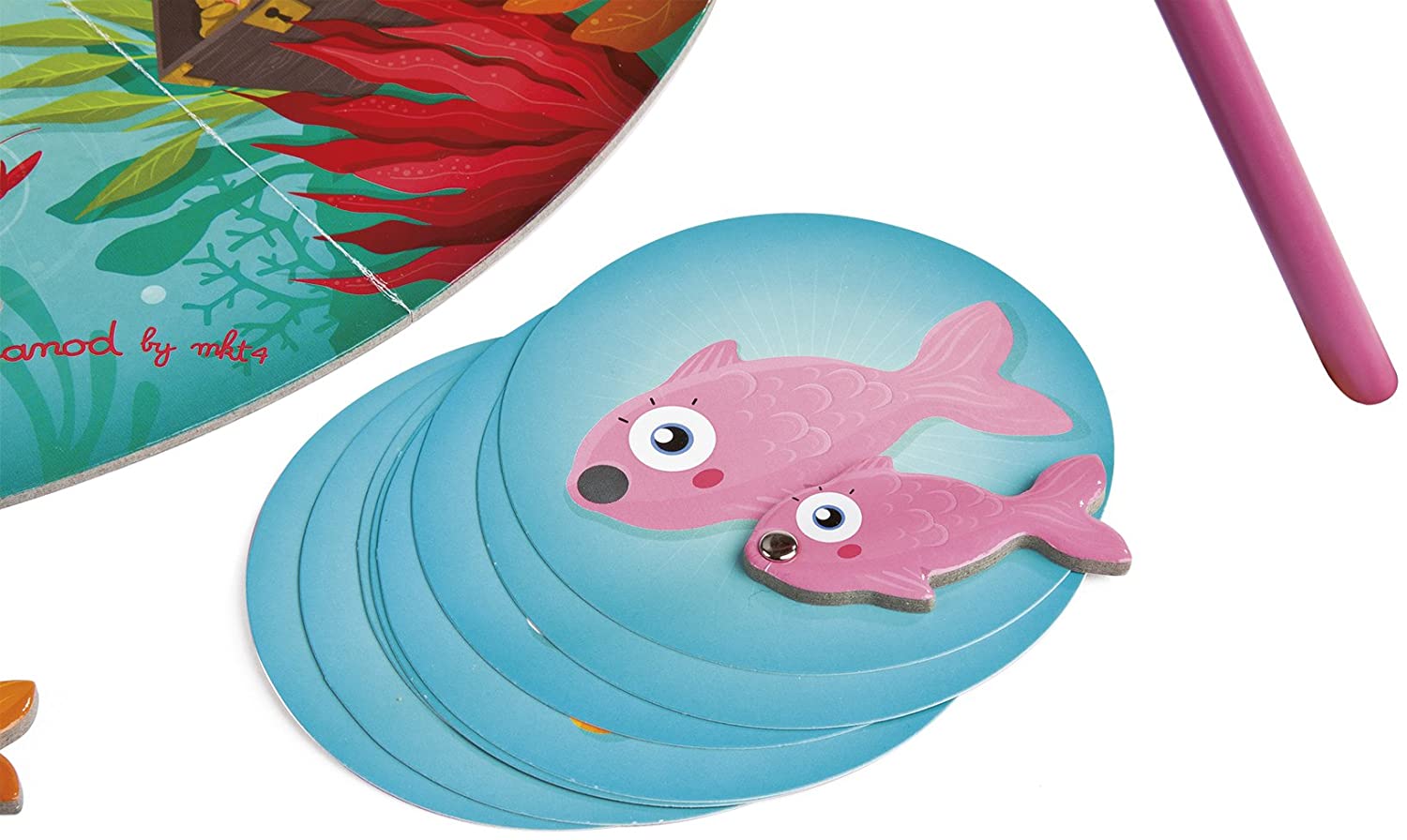 Contenu : Un plateau, 20 poissons magnétiques, 4 cannes à pêche et 20 cartes. Apports éducatifs : Echanger, partager.