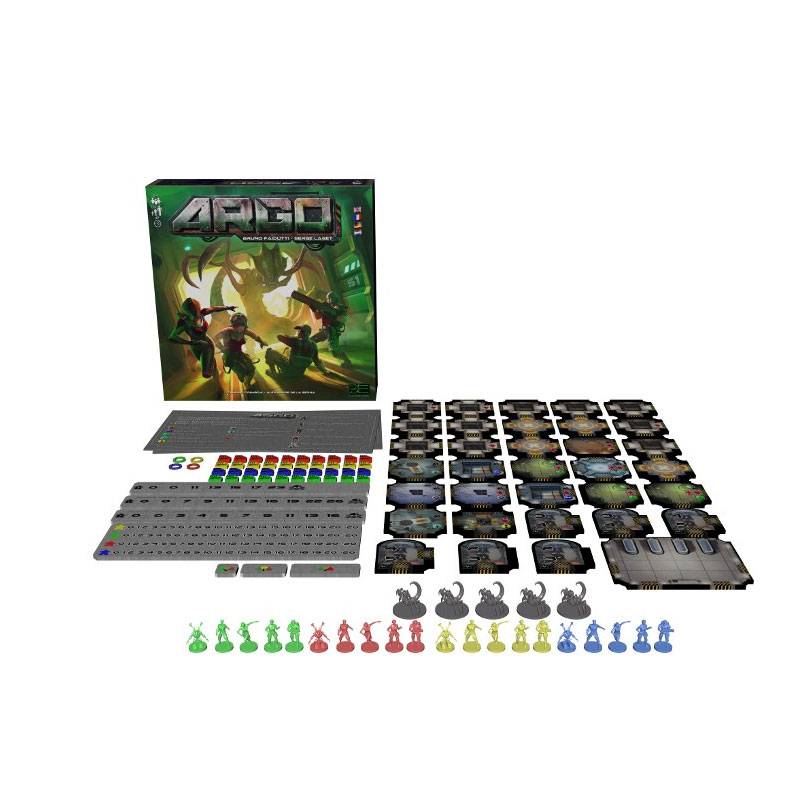 Argo est un jeu de pose de tuile, d’exploration de station spatiale, avec un aspect puzzle bien présent et un côté « pas coopératif mais il faut quand même s’aider un peu » qui le rend unique dans sa catégorie !