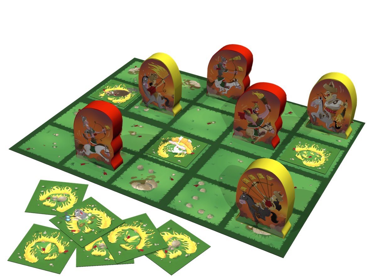 Contenu : 6 pions Cavalier (3 Romains, 3 Attila), 14 Tuiles Terre Brulée, 2 plateaux (2 x 2), 3 plateaux (2 x 3).