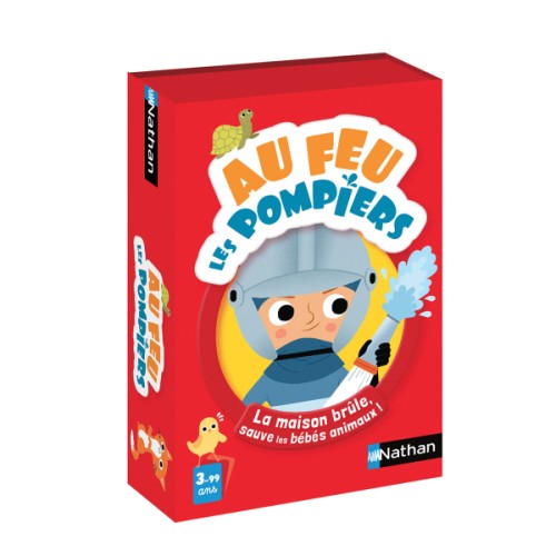 Au feu les pompiers, un jeu de bataille revisité. Il y a le feu aux cuisines ! Déploie la plus grande échelle afin de sauver les bébés animaux.