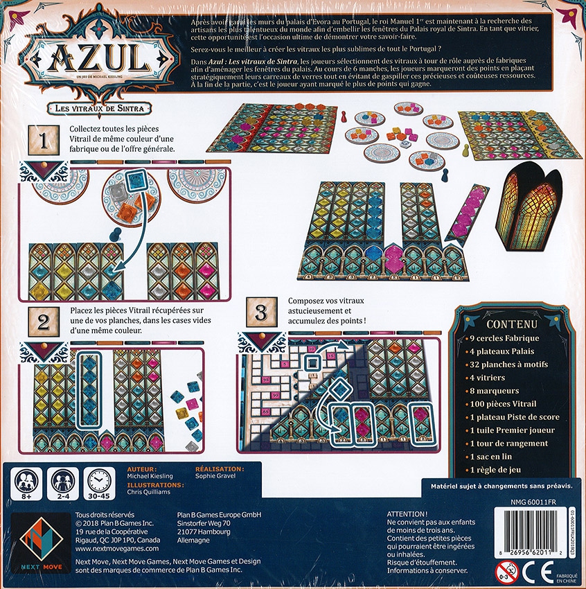 Azul : Les vitraux de Sintra met en compétition les joueurs qui doivent choisir judicieusement des panneaux de verre servant à décorer de motifs colorés les fenêtres de la chapelle. Soyez prudent, si vous endommagez ou gaspillez ces précieuses ressources, vous serez lourdement pénalisés. Les planches à motif ainsi que les plateaux Palais à double face permettent une rejouabilité presqu’infini !