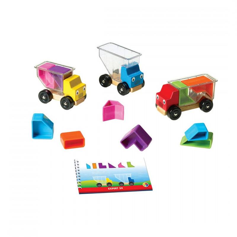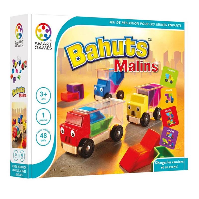 Bahuts Malins est un jeu de réflexion évolutif qui suivra les progrès accomplis par votre enfant. Il considérera d’abord les camions en bois comme des jouets qu’il pourra remplir et déplacer. Ensuite, il voudra résoudre les 48 défis qui lui seront proposés dans le livret. Les exercices sont d’abord faciles et gagnent ensuite en complexité.