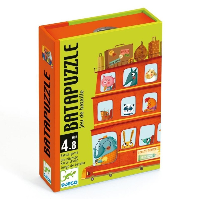 Batapuzzle de Djeco. Un jeu de bataille original & rapide ! Le premier joueur à avoir remporté tous les éléments de son puzzle a gagné.
