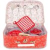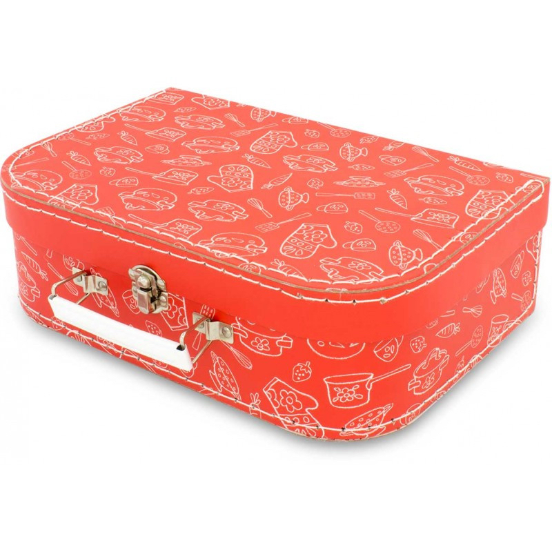 Batterie de Cuisine… Dans cette jolie mallette en carton votre enfant découvrira une batterie de cuisine en métal bien complète pour apprendre à cuisiner comme papa et maman et jouer comme les grands !