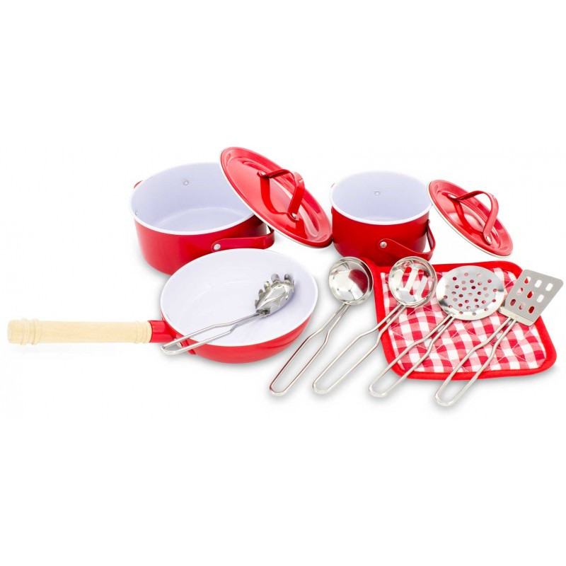 Contenu : 11 pièces : 1 faitout et 1 couvercle, 1 casserole et 1 couvercle, 1 poêle, 1 manique et 5 ustensiles.