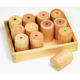 Contenu : 1 plateau et 12 boîtes à sons réalisées en bois.