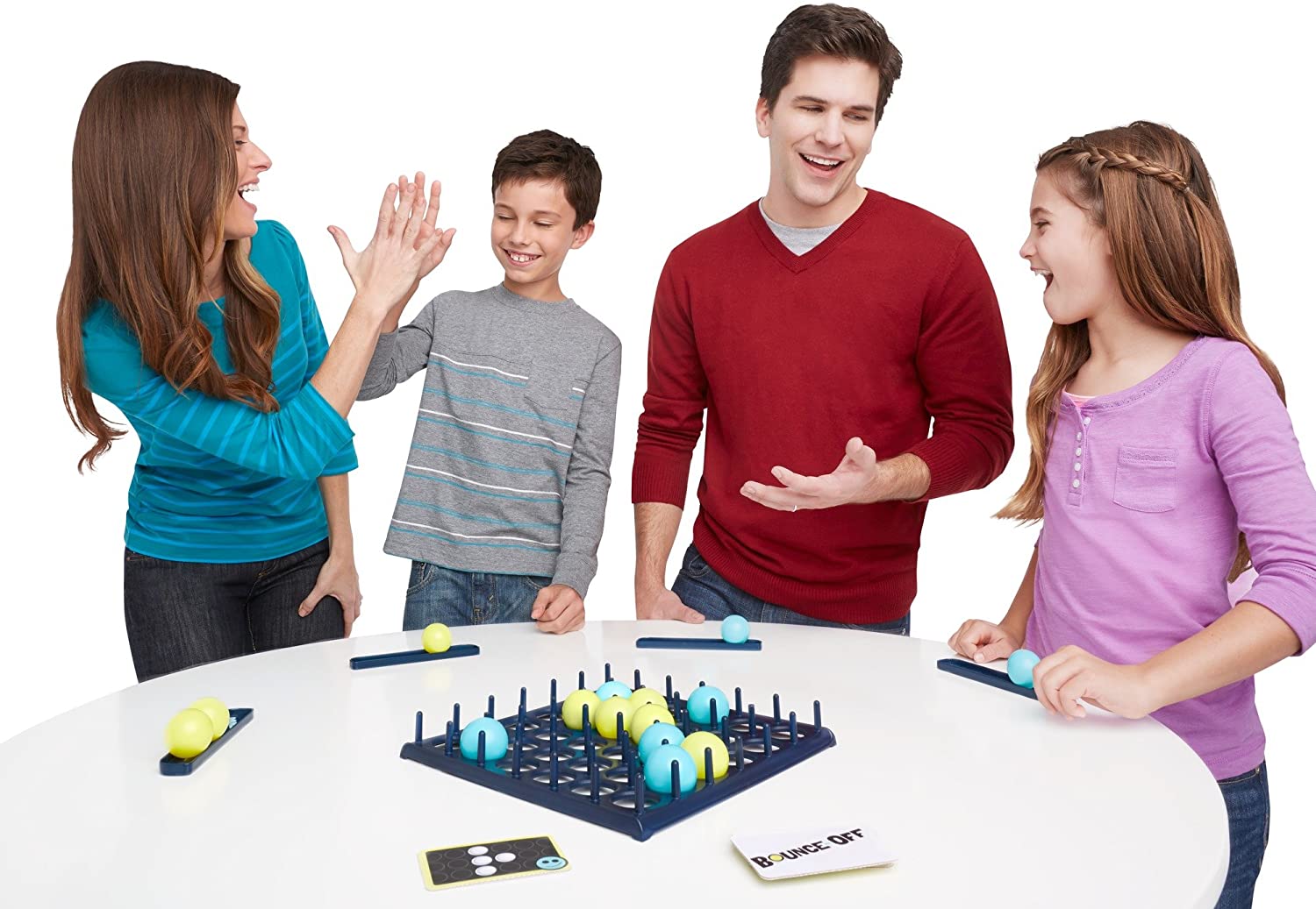 Un jeu d’adresse et d’ambiance au principe simplissime pour les enfants à partir de 7 ans ! Constituez deux équipes comprenant 1 ou 2 joueurs et attribuez à chacune une couleur (bleu ou jaune). Piochez une carte défi correspondant à votre couleur et regardez attentivement le motif imprimé sur celle-ci. le but du jeu est de le reproduire sur le plateau de jeu à l’aide des 8 balles à votre disposition.