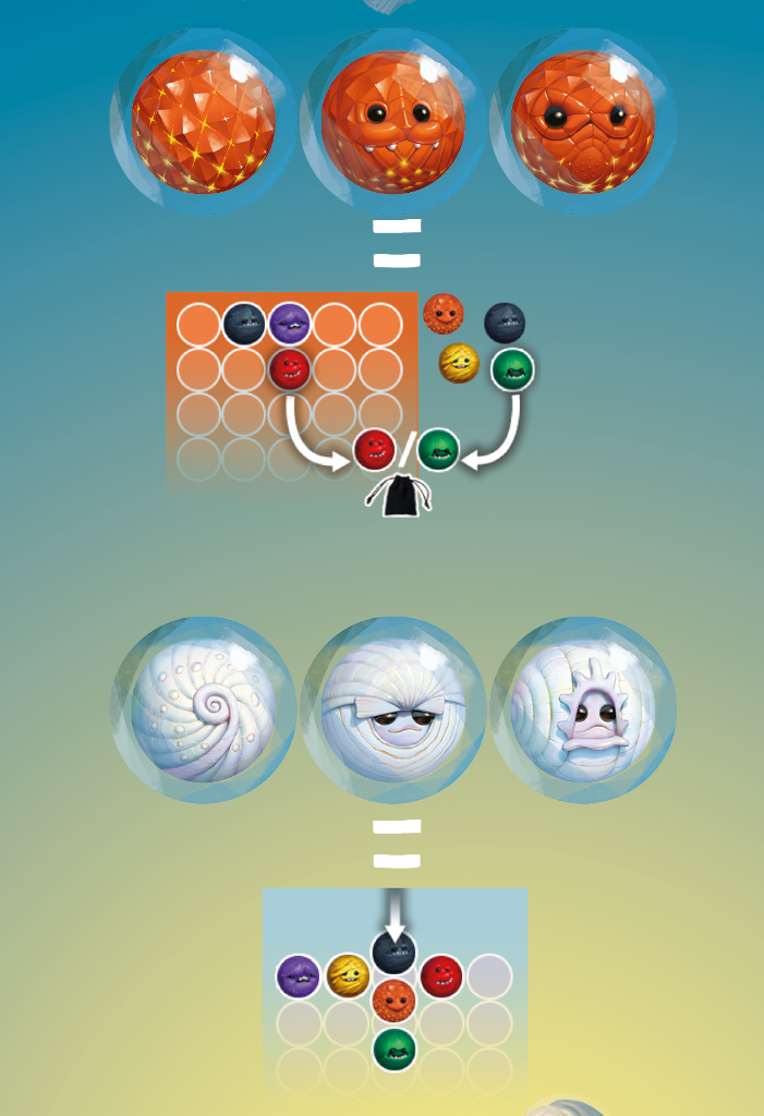 En effet, en début de partie vous pourrez choisir parmi les 7 familles disponibles, composer votre jeu et ainsi créer vos combinaisons de Bubblees (et donc de pouvoir) favorites.