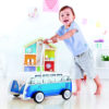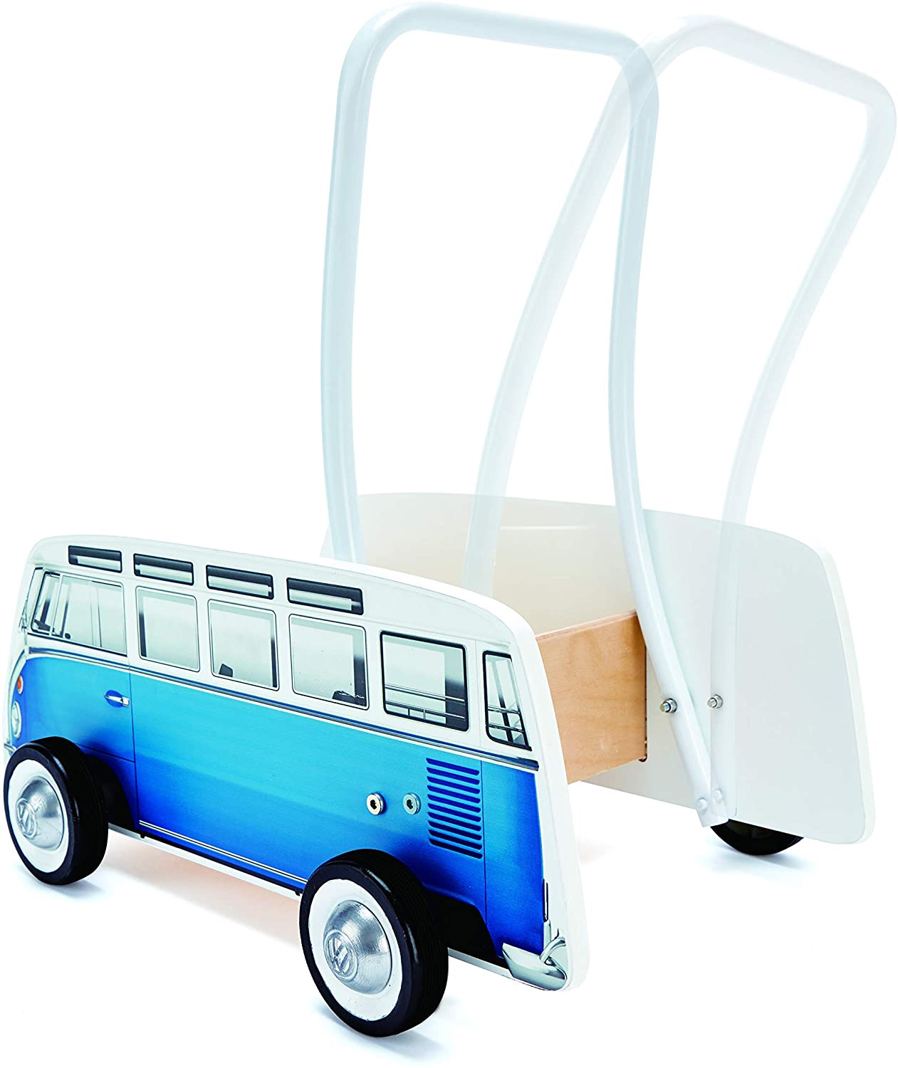 Découvrez le Trotteur Combi Bleu de Hape, un magnifique chariot de marche vintage en forme de Bus Volkswagen T1 pour éveiller votre enfant. Un trotteur pousseur qui favorise l’éveil et la motricité des enfants.