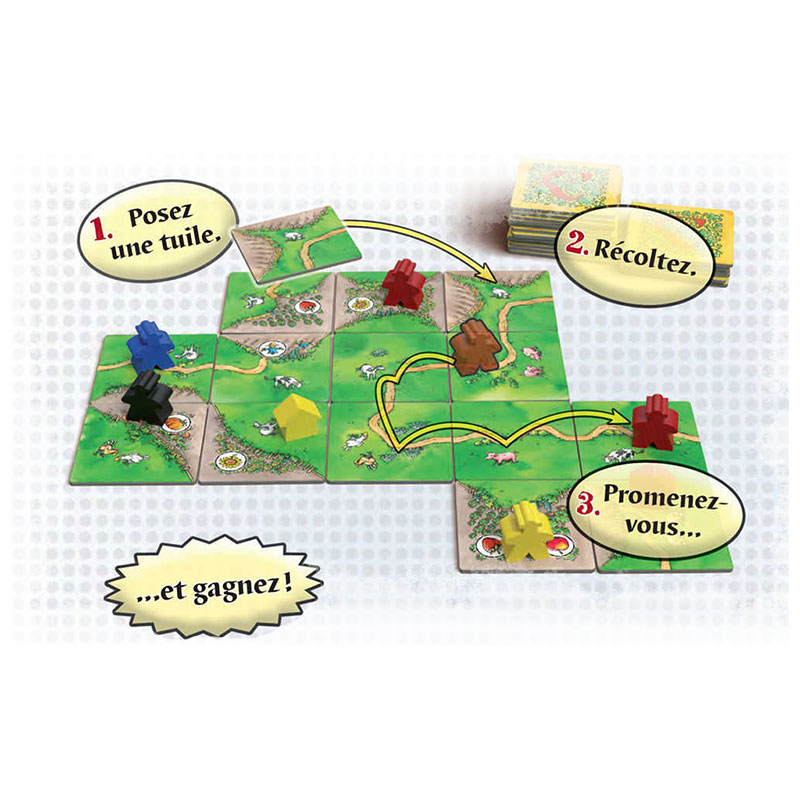 Carcassonne Par Monts Et Par Vaux est un nouveau jeu dérivé du célèbre Carcassonne. Ici, l’accent est mis sur le développement de l’agriculture. Plutôt que des villes, les joueurs construisent ici des champs qui produisent des fruits et légumes, qui eux-même rapportent des points de bonus en fin de partie. Dans les champs, les joueurs construisent des étables pour abriter les animaux des tuiles avoisinantes. Soyez fin tacticien et marquez plus de points que vos adversaires!