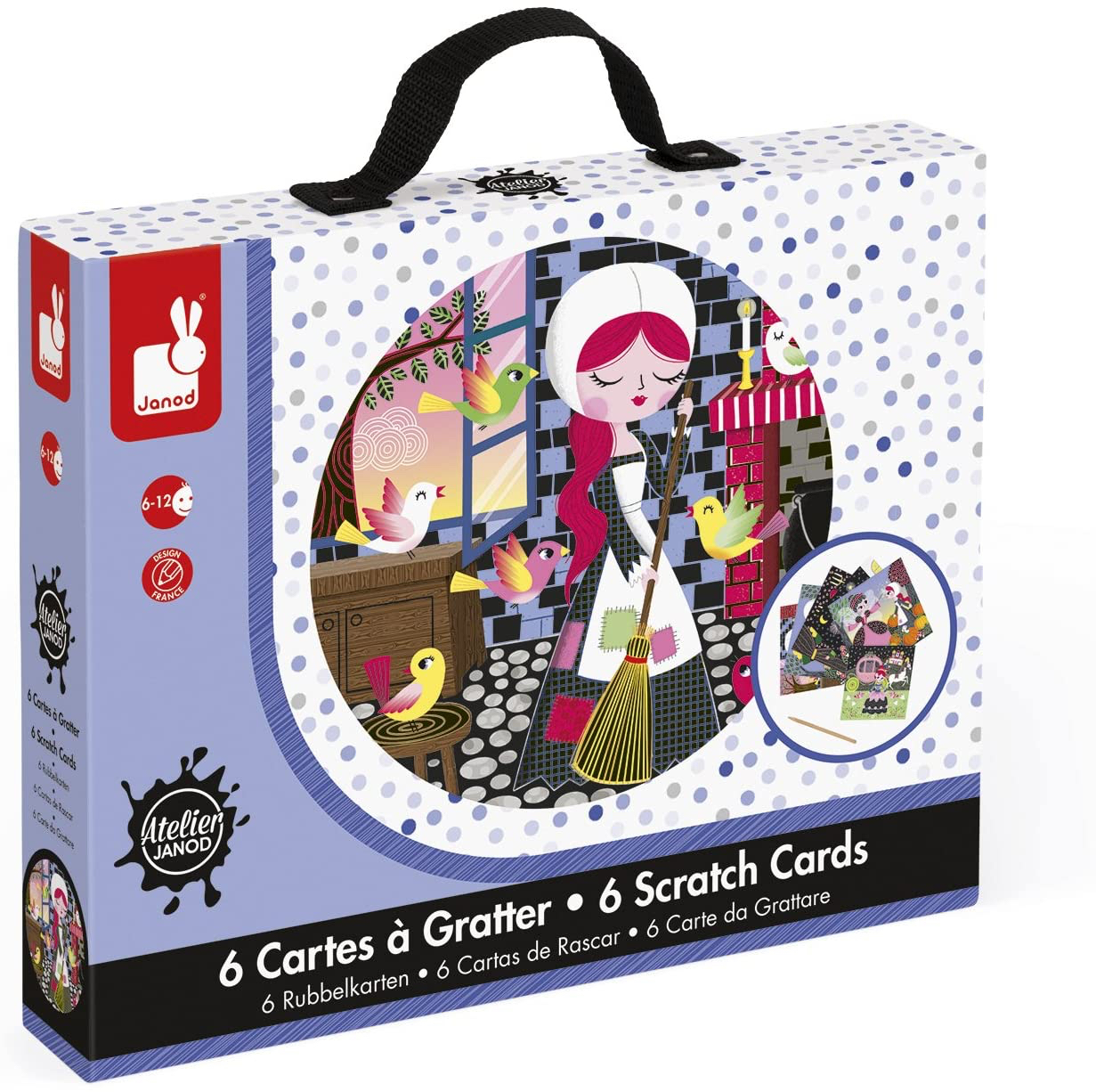 Cette activité est idéale pour développer la créativité de votre enfant. Valisette à tiroir avec poignée tissus rivetée de la collection « L’Atelier By Janod ». Ce kit original comprend 6 cartes à gratter basées sur le conte de Cendrillon. En suivant le modèle, il suffit de gratter les zones noires grâce à un stylet en bois pour laisser apparaître différentes scènes illustrant l’histoire de la princesse. Originaux et colorés, les tableaux révélés pourront également décorer une chambre d’enfant.