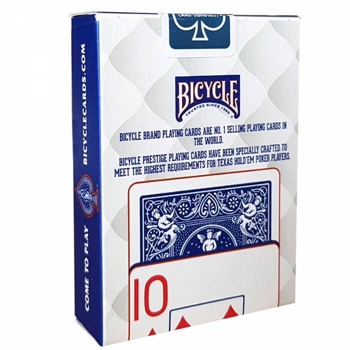 Bicycle « PRESTIGE » dos bleu est un jeu de 55 cartes 100% Plastique au format poker avec 2 index jumbo.