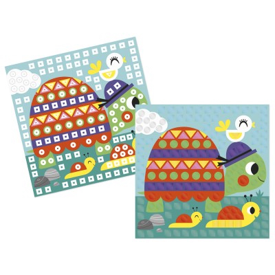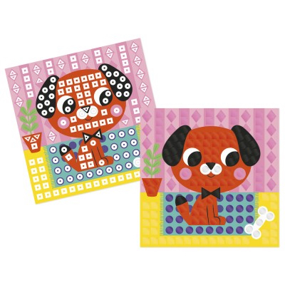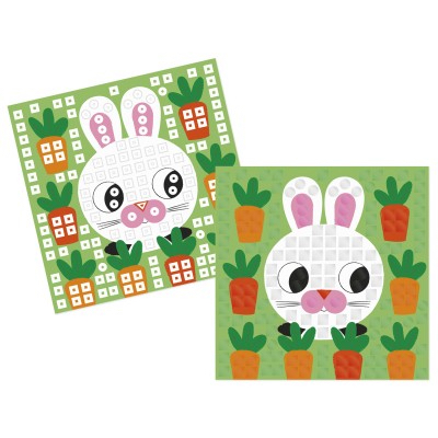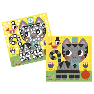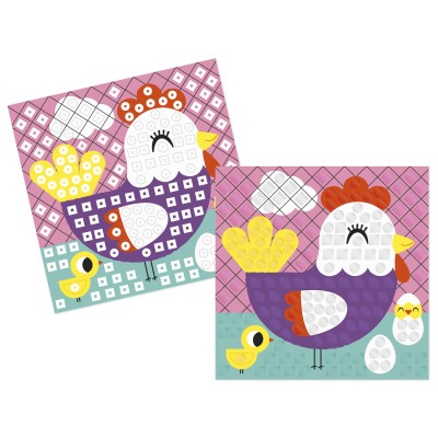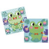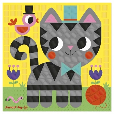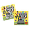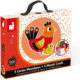 Les Valisettes « L’Atelier Janod » proposent des activités créatives tendances et variées. Dans cet atelier l’enfant devra coller les gommettes correspondantes en formes et couleurs pour recréer les tableaux d’animaux : Chat, chien, grenouille, lapin, tortue et poule.