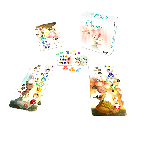 Chaque joueur possède un plateau représentant les 7 Chakras qu’il doit remplir de gemmes symbolisant l’énergie qui circule dans son corps. Pour marquer des points, un joueur doit harmoniser le mieux possible chacun de ses Chakras.