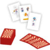 Contenu : 3 tuiles podium, 9 tuiles personnages en bois, 48 cartes. Règle du jeu.
