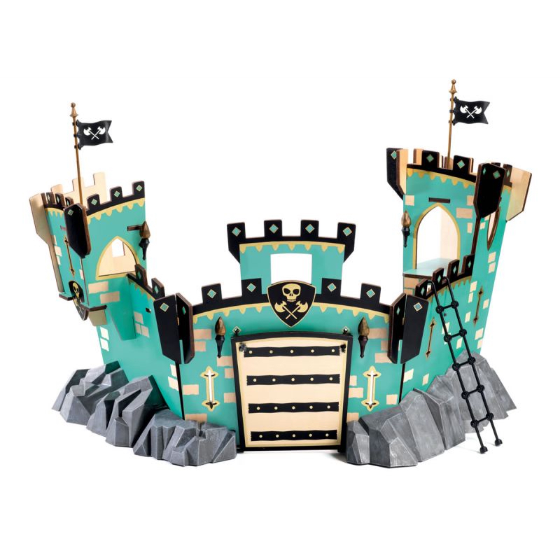 Castle on ze rock est le grand château en bois D’Arty Toys de Djeco aux nombreux détails stimulant l’imaginaire des enfants.
