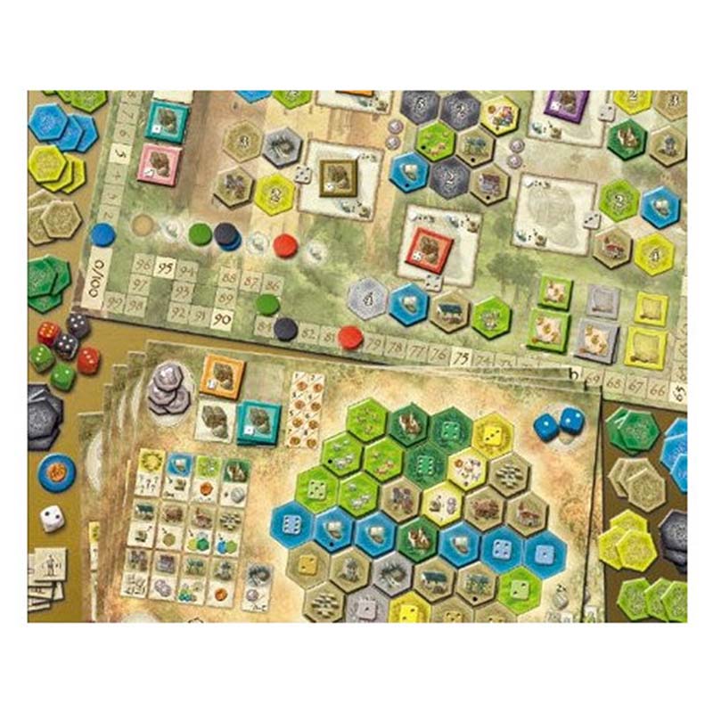 Les deux dés proposent des options d’action, mais les joueurs décident toujours des choix finaux. Que ce soit par commerce ou élevage, construction de ville ou recherche scientifique, de nombreuses voies conduisent à la prospérité et à la proéminence des joueurs !