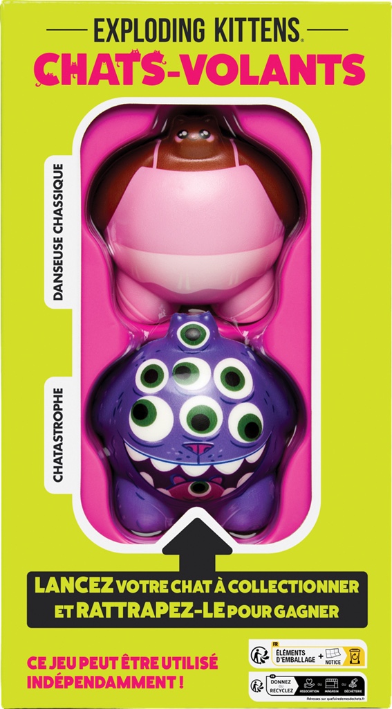 Dans Chats-Volants, chaque duel est une explosion de fun : 2 chats en mousse adorables, des cartes d’action complètement barrées, et une course contre la montre pour remporter la victoire. Facile à apprendre, hyper drôle à jouer et totalement re-jouable. Collectionnez-les différents packs qui contiennent des chats en mousse aux looks très spéciaux et des cartes exclusives pour compliquer la tâche de vos adversaires avec des actions inédites. Et rien ne vous empêche de vous retrouver à plus de 2 joueurs pour tous vous affronter dans une succession de défis hilarants. Que le meilleur gagne !