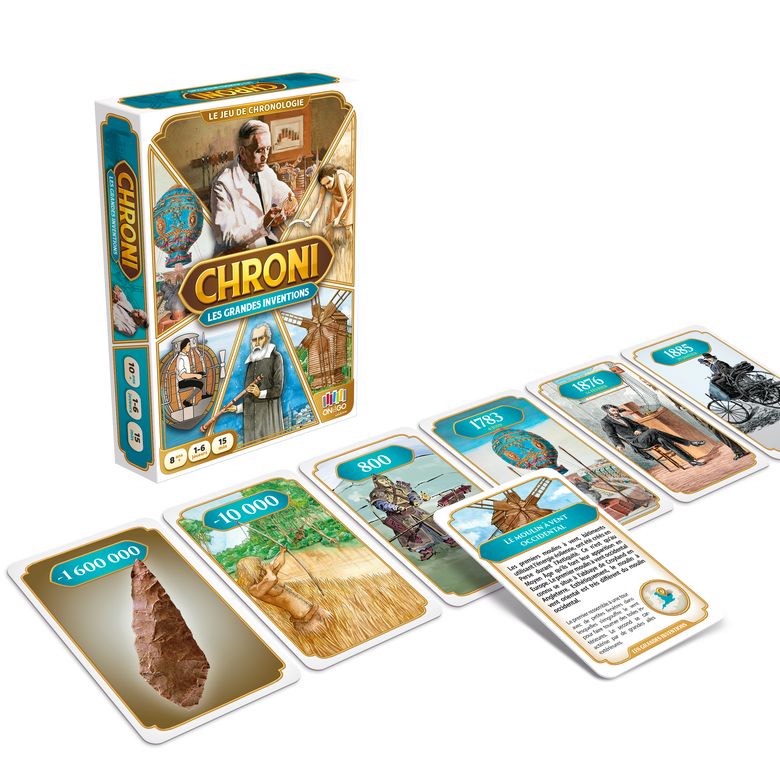 Chroni – Les Grandes Inventions… Le jeu pour apprendre autrement ! Jouez à placer vos cartes dans la frise chronologique, et apprendre autrement. Le premier joueur à ne plus avoir de cartes en main remporte la partie. Mais attention si on se trompe.. on pioche. Instructif, évolutif, simple et malin. Récompensé au concours Lépine.