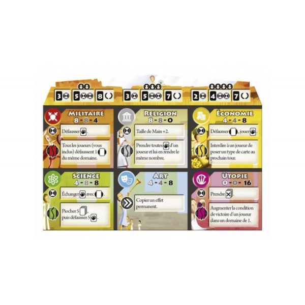 Développez votre civilisation dans les six domaines : militaire, religion, économie, science, art et utopie. Soyez le premier à devenir hégémonique dans un domaine et vous entrerez dans l’Histoire.
