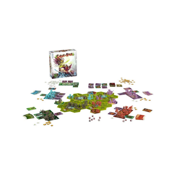 Clash of Rage est un jeu de confrontation et d’escarmouche. Vous incarnez l’une des 4 armées, chacune disposant de ses unités spécifiques. À votre tour, vous pouvez soit déplacer vos troupes, soit dépenser des pièces d’or pour acquérir des équipements (des armures ou des armes) et ainsi améliorer vos unités. En prenant le contrôle de territoires,  vous bénéficiez de nombreux avantages : les Pierres de Renfort font apparaitre des unités supplémentaires dans votre armée, et les cités elfes vous apportent de précieux Cristaux. En dépensant ces cristaux dans les Forges sous votre contrôle, vous pouvez créer des équipements légendaires qui renverseront bien des situations, et vous rapprocheront un peu plus de la victoire !