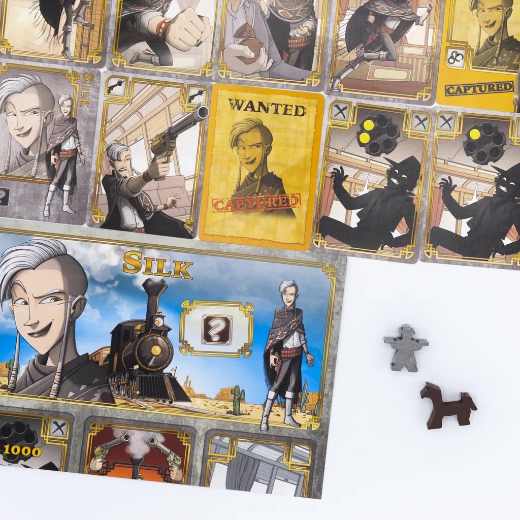 Dans le jeu Colt Express, les joueurs incarnent des bandits qui se lancent à l’attaque d’un train de voyageurs en plein Far-West. Chaque joueur représente un personnage qui a sa propre personnalité mais ils ne rêve tous qu’à réunir le plus gros magot en détroussant les passagers avant que le train n’arrive en gare.