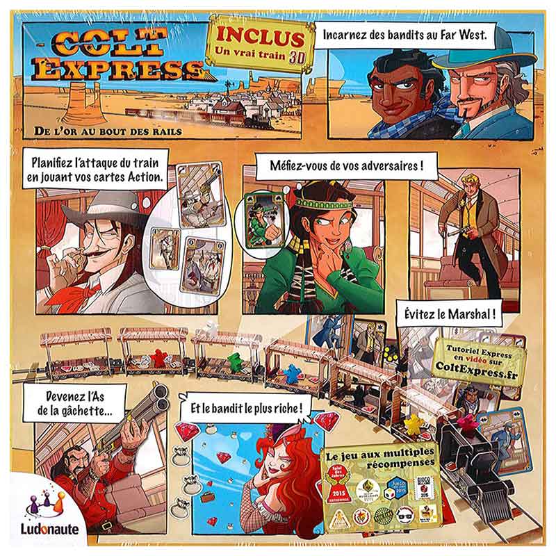 Dans le jeu Colt Express, les joueurs incarnent des bandits qui se lancent à l’attaque d’un train de voyageurs en plein Far-West. Chaque joueur représente un personnage qui a sa propre personnalité mais ils ne rêve tous qu’à réunir le plus gros magot en détroussant les passagers avant que le train n’arrive en gare.