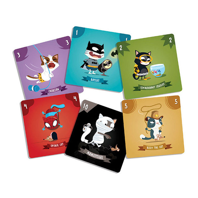 Piochez une carte dans le jeu de votre voisin, puis défaussez deux cartes de même valeur pour déclencher des effets amusants et embêter les adversaires ! Surtout, méfiez-vous du chat noir : la momistigri !