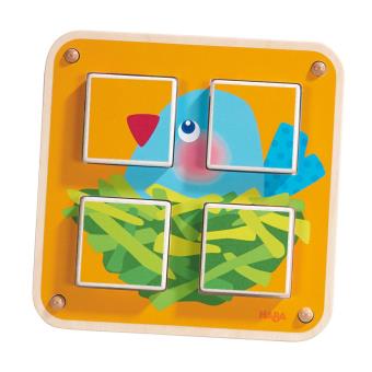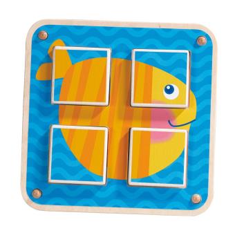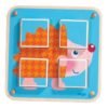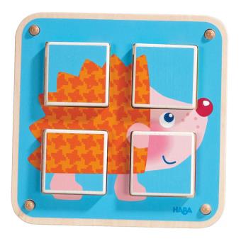 1, 2, 3, 4 … et voilà, mon animal du jardin est fini ! Un jeu idéal pour développer la motricité fine, stimuler l’esprit de déduction et favoriser la reconnaissance des formes et des couleurs. Les enfants à partir de 2 ans sont invités à reconstituer à tour de rôle les 6 animaux représentés (un hérisson, une souris, une coccinelle, une grenouille, un poisson et un oiseau) en insérant les quatre cubes dans le cadre correspondant. Pour y arriver, ils peuvent s’aider de la couleur et des motifs présents à l’arrière-plan.