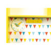 Parfaitement équipée avec une horloge avec aiguilles fonctionnelles, une patère pour suspendre les cuillères, un évier en métal, une ardoise, elle a aussi en bonus des plaques à induction qui s’allument grâce à des leds et qui imitent le bruit de l’eau qui boue ! Il suffit d’appuyer une fois sur les boutons rouges pour que les plaques s’allument, puis une deuxième fois pour entendre le son de l’eau qui bout. Le son et les plaques à induction s’éteignent automatiquement au bout de 30 secondes ou lorsqu’on appuie une troisième fois sur les boutons rouges. Comme une véritable cuisine, elle est équipée de 3 boutons rotatifs (dont deux avec bruitage), d’un four, d’un micro-ondes et d’un placard avec portes magnétiques. Pour compléter cette cuisine pour enfant en bois, 7 accessoires sont inclus : 1 poêle en métal, 1 passoire en métal, 1 cuillère en métal, 1 manique et 3 boites d’aliments en carton.