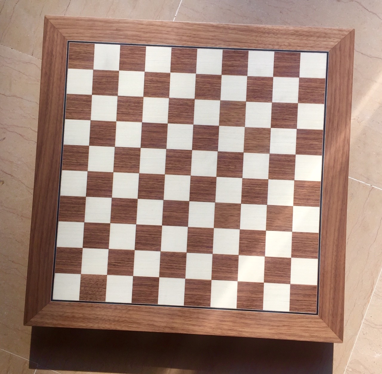 Plateau pour jeu de Dames Luxe. Marqueterie noyer et sycomore. Marque Chavet Plateau seul.