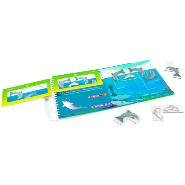 Dauphins Joueurs est un jeu de réflexion pour toute la famille proposant 48 défis de plus simple au plus compliqué.