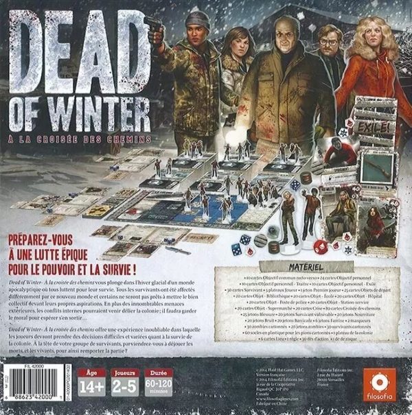 Dead of Winter, À la croisée des chemins, un jeu coopératif. Malgré des ambitions différentes votre but commun : survivre à l’hiver et aux zombie.