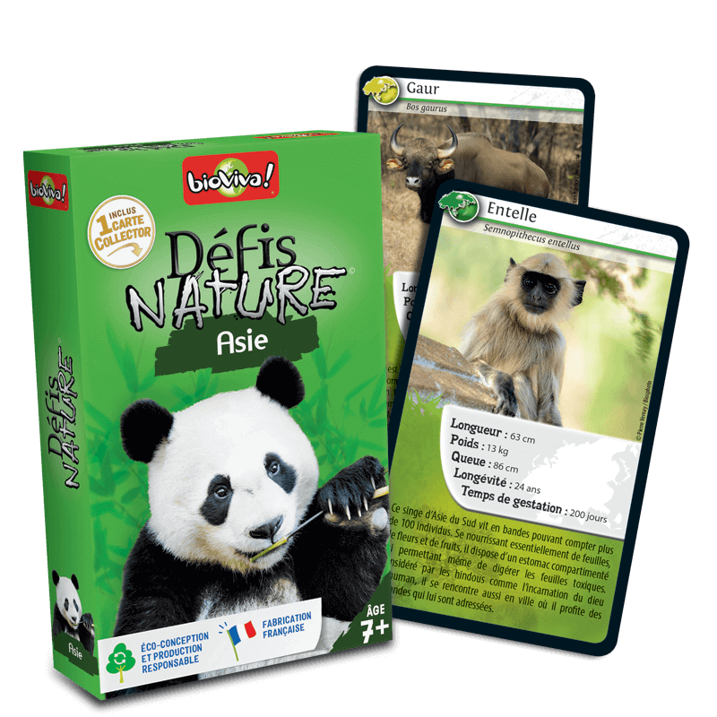 Défis Nature vous emmène à la rencontre des animaux d’Asie les plus surprenants. Découvrez les espèces à préserver, puis pariez sur les points forts de vos animaux pour collecter toutes les cartes du jeu et remporter la partie. Alors, prêts à relever le défi ?