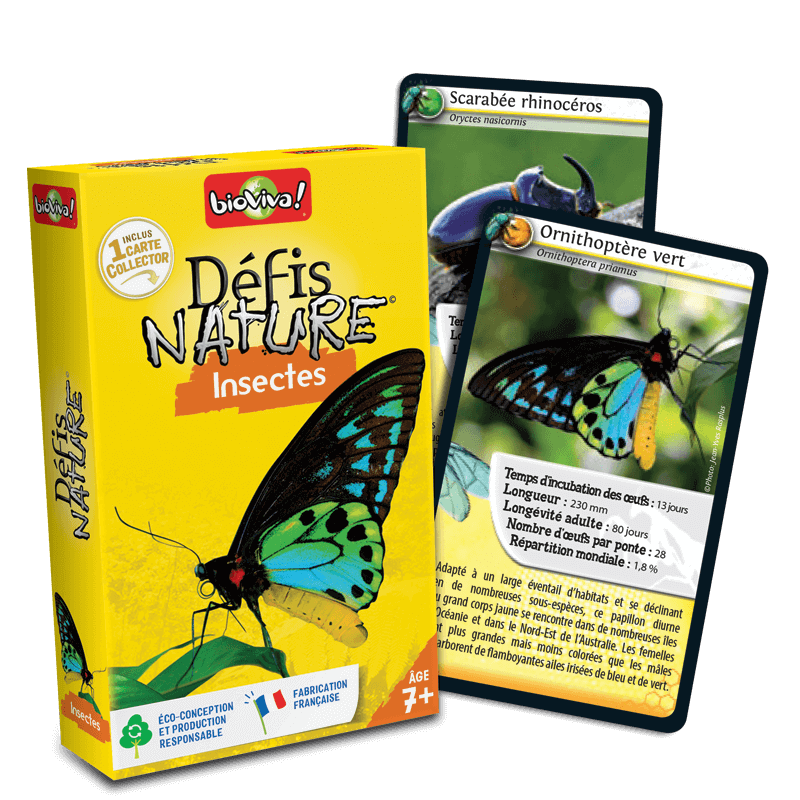 Défis Nature vous emmène à la rencontre des insectes du monde les plus surprenants. Découvrez les espèces à préserver, puis pariez sur les points forts de vos animaux pour collecter toutes les cartes du jeu et remporter la partie. Alors, prêts à relever le défi ?