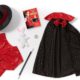 Contenu : Une veste de chef, un chapeau, un gant de cuisine, trois ustensiles en bois, des cuillères à mesurer en plastique et un porte-nom à personnaliser au crayon.