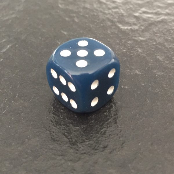Dés à jouer opaque Bleu foncé avec coins arrondis et marquage en creux sur les faces du Dé. Taille standard de 16 mm. 10 couleurs au choix. Accessoires pour jeu de magie, de rôle, jeu de société ou de stratégie. Vente à l’unité.