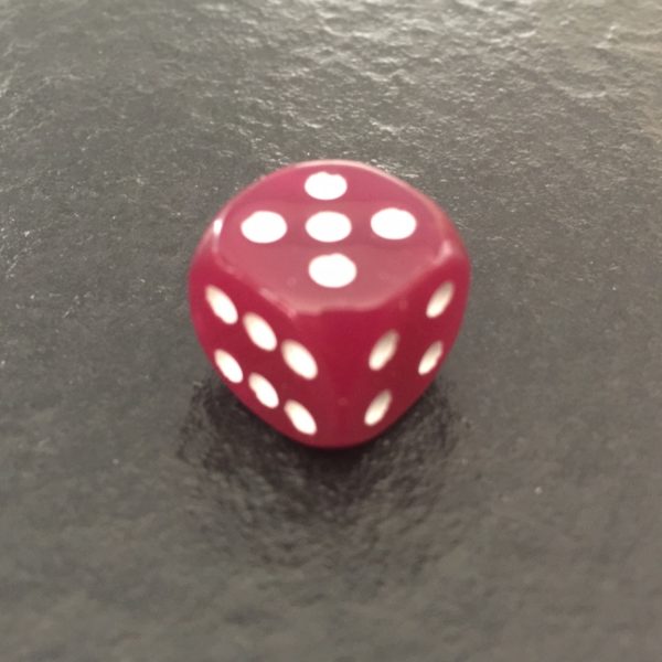 Dés à jouer opaque Violet avec coins arrondis et marquage en creux sur les faces du Dé. Taille standard de 16 mm. 10 couleurs au choix. Accessoires pour jeu de magie, de rôle, jeu de société ou de stratégie. Vente à l’unité.