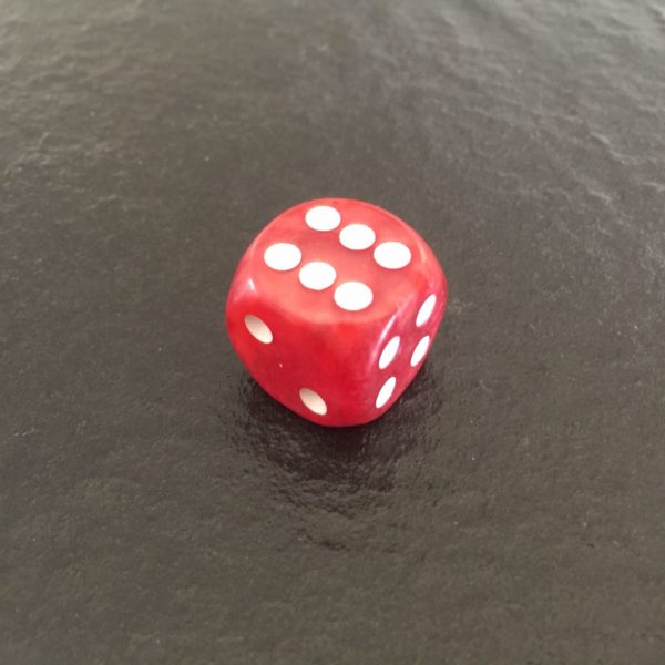 Dés à jouer nacrés /marbrés Rouge avec coins arrondis et marquage sur les faces du dé. Taille standard de 20 mm avec marquage habituel. Un joli dé aux couleurs nacrées avec des reflets à l’intérieur du cube. Accessoires pour jeu de rôle, jeu de société ou de stratégie. Vente à l’unité.