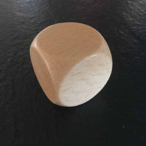 Dé de taille 30 mm en bois naturel à personnaliser. Vous pouvez mettre votre logo ou l’inscription de votre choix pour créer votre propre jeu de société. Cependant pour une meilleure conservation dans le temps, vernir le dé reste préconisé.