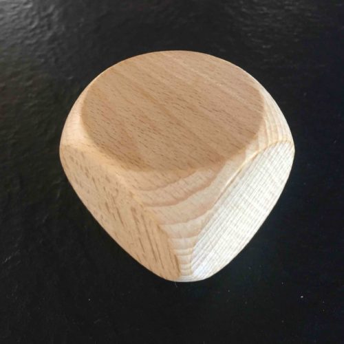 Dé de grande taille 60 mm en bois de hêtre naturel à personnaliser. Vous pouvez mettre votre logo ou l’inscription de votre choix pour créer votre propre jeu de société. Cependant pour une meilleure conservation dans le temps, vernir le dé reste préconisé.