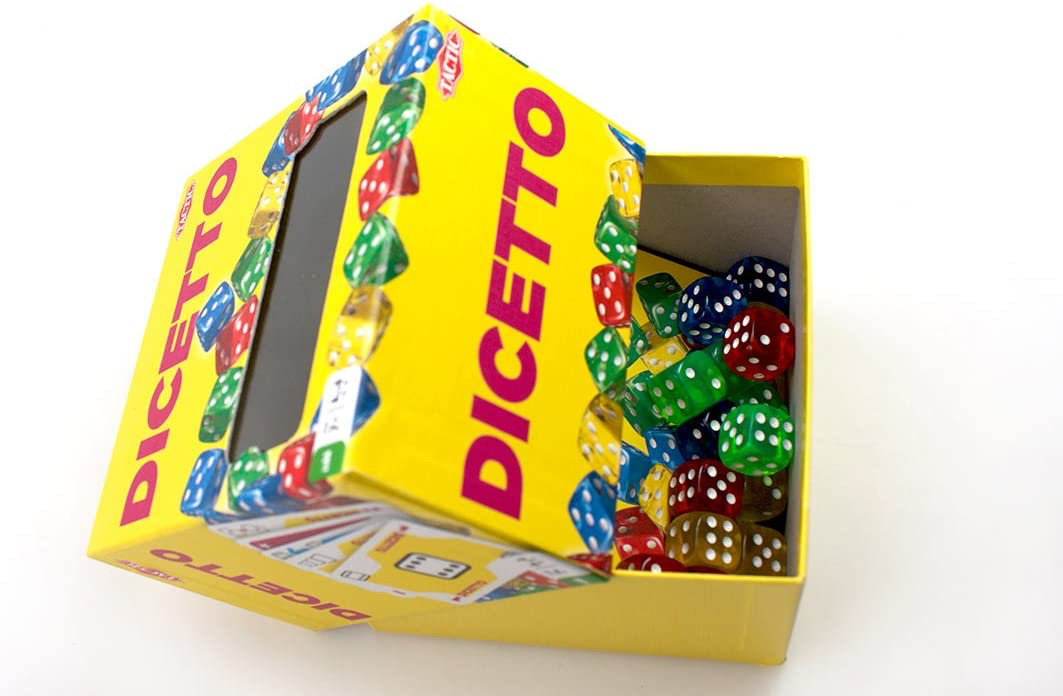 Dicetto de Tac-Tic … Lancez vos dés et réalisez les combinaisons indiquées sur les cartes pour les gagner et remporter la partie ! Un jeu qui combine chance et tactique pour un maximum de fun. Des dés colorés pour des parties hautes en couleur ! Un plaisir d’un jeu de dés sans cesse renouvelé !